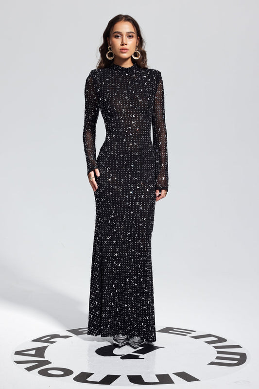 • Andie Rhinestone Bodycon Long Sleeves Maxi Dress