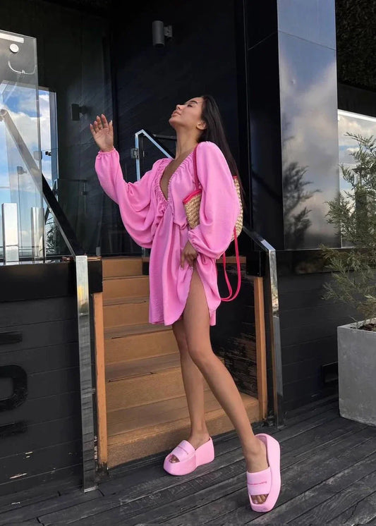 Yvonne Turtleneck Sheer Sleeves Mini Dress