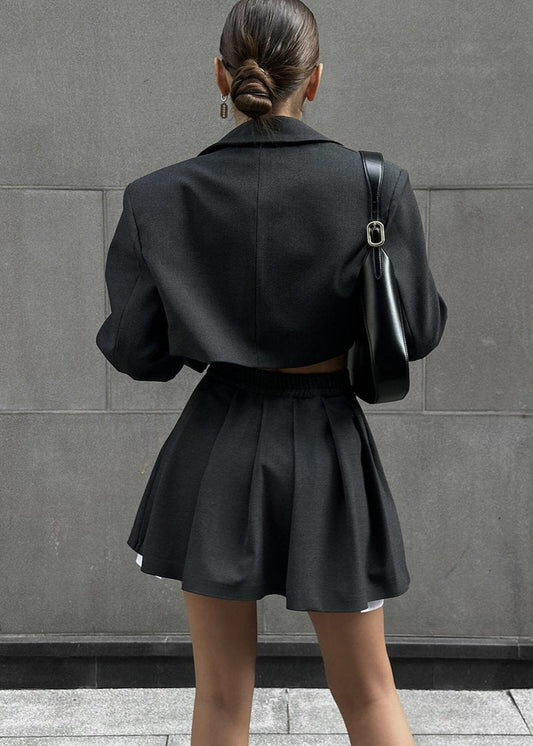 Cropped Blazer and Skater Skirt Set - Modern Sophistication