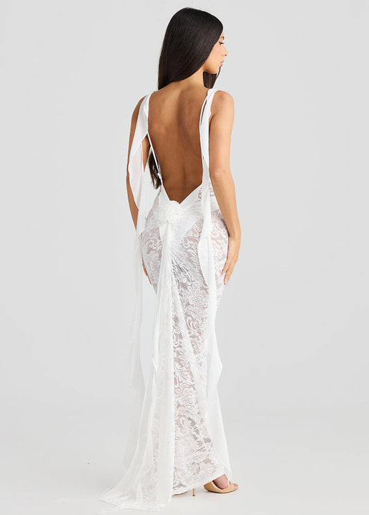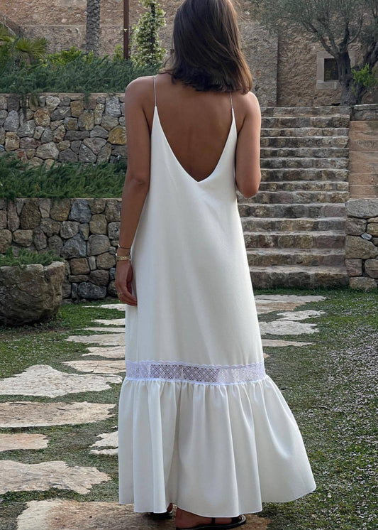 Aurelia Lace-Trim Maxi Dress White Smocked Sundress with Adjustable Straps
