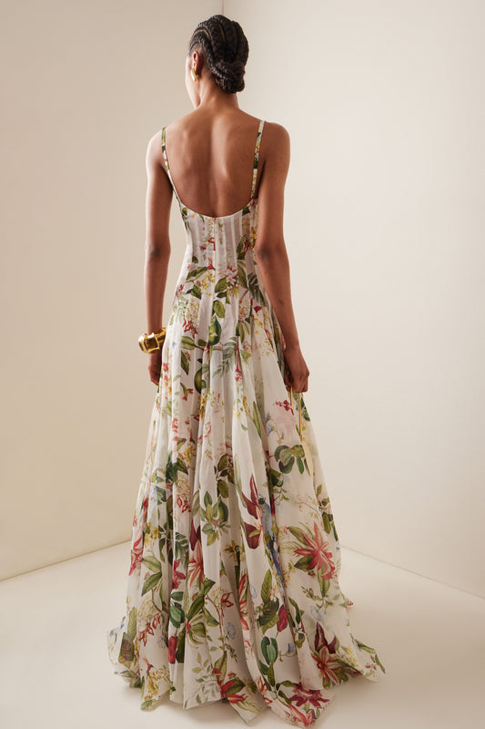 Sophia Blossom - Elegant Floral Tie-Strap Maxi Dress