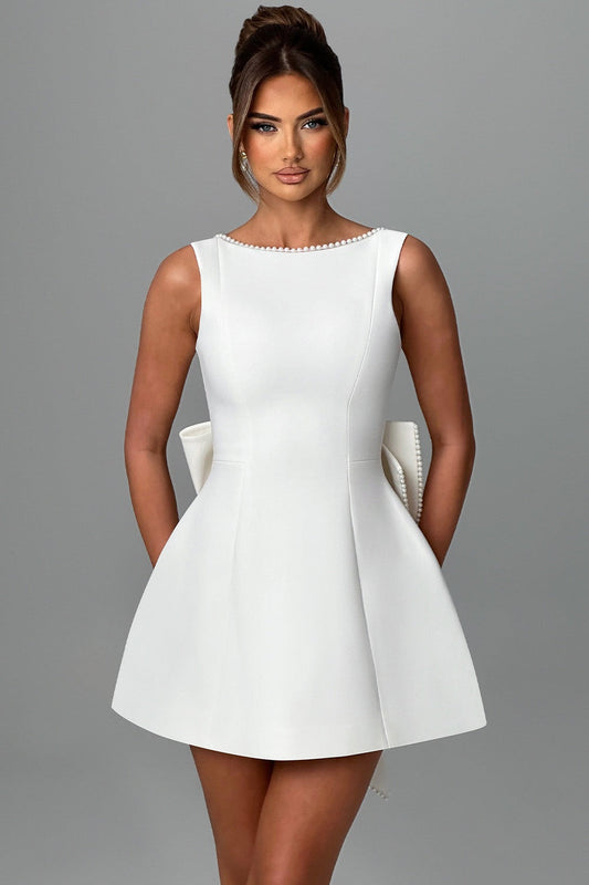 Cecila Bowknot Pearl Backless Mini Dress