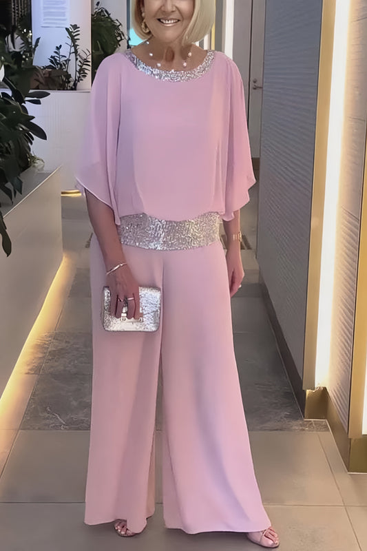 Sequins Patchwork Bat Sleeve Tops Pants Suits