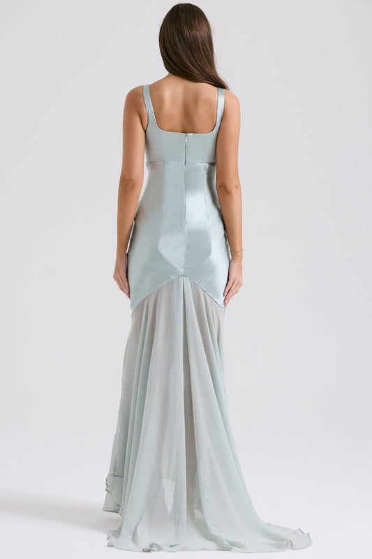 Moonlit Soiree - Satin Asymmetrical One Shoulder Backless Strap Maxi Dress