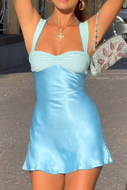 Satin Solid Lace Up Maxi Dress Fuchsia