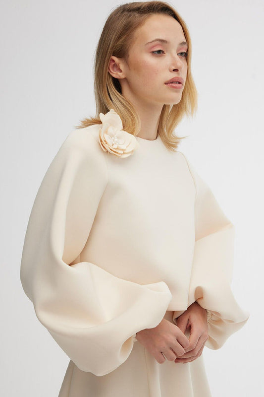 EmbroideRed Puff Sleeve Jacket and Skirt Set