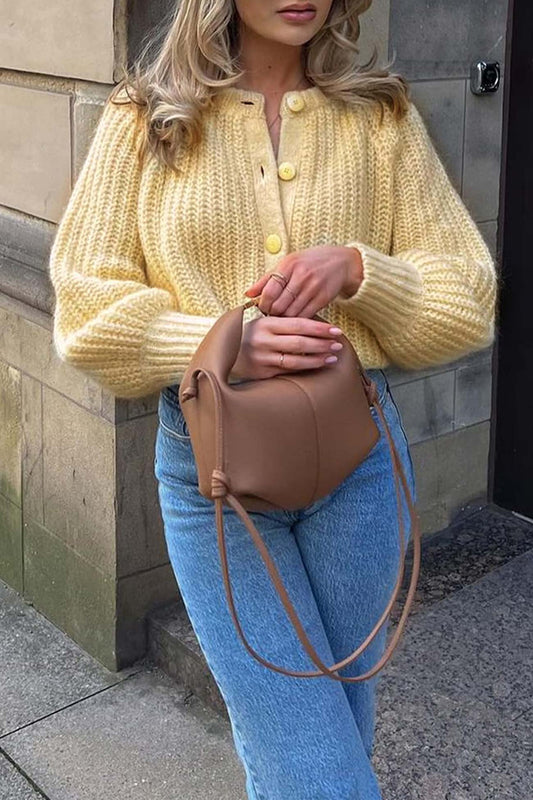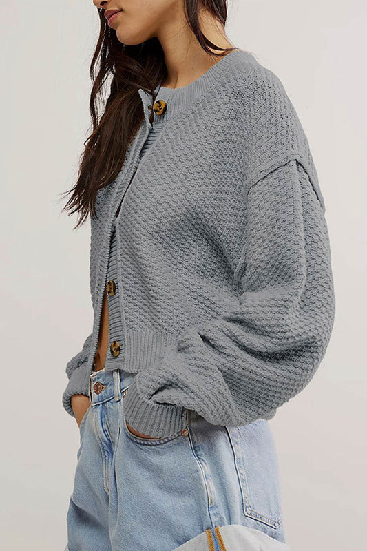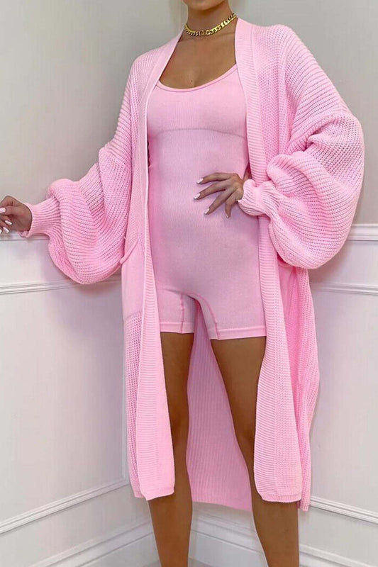 Drop Shoulder Lantern Sleeve Pocket Long Cardigan