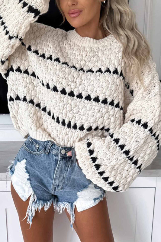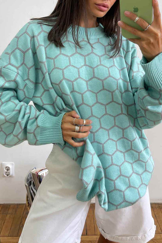 Jacquard Turtleneck Raglan Sleeve Sweater