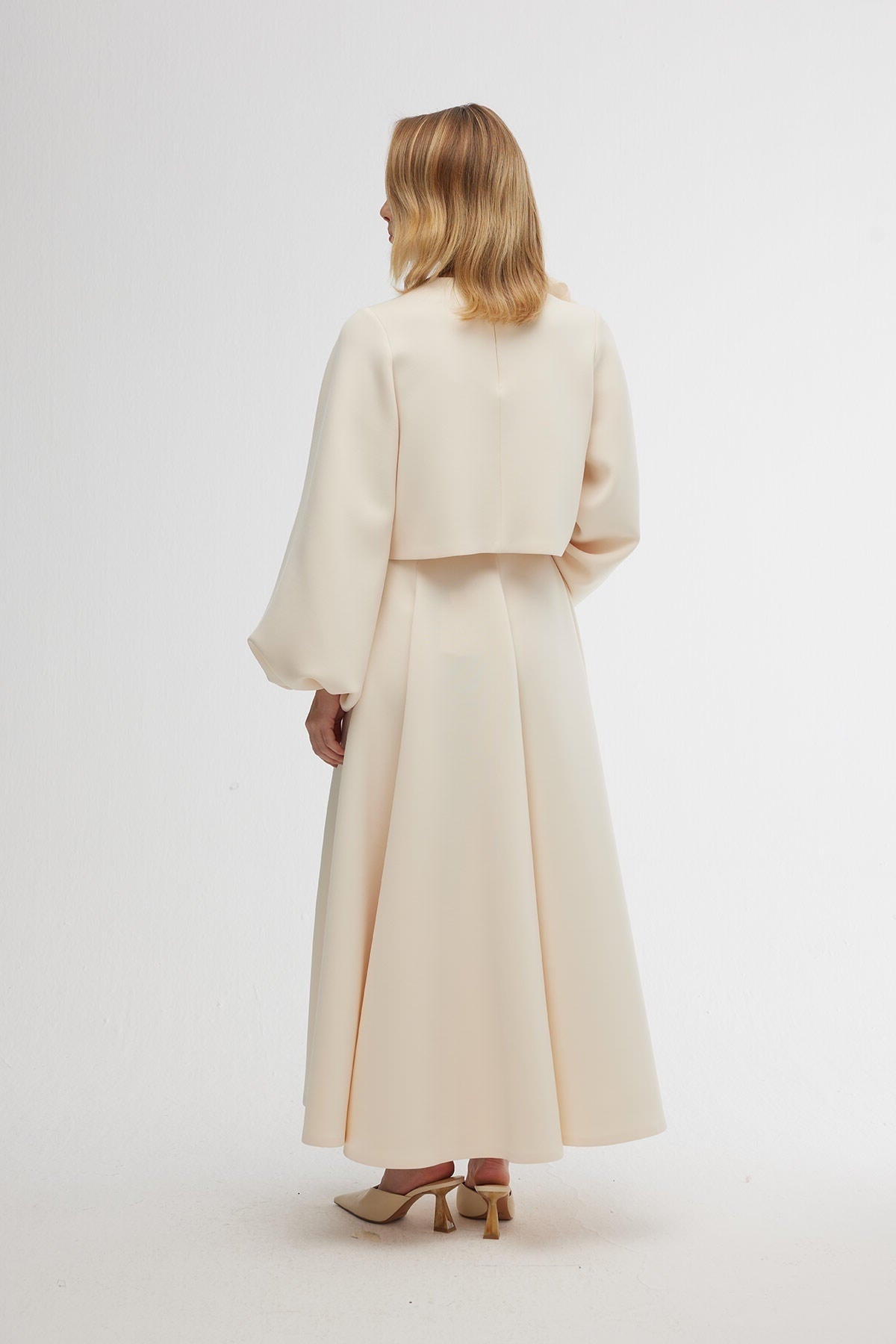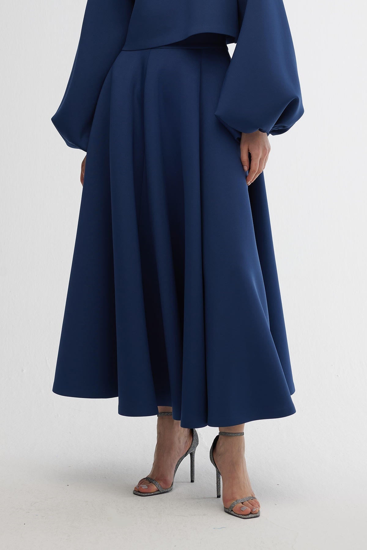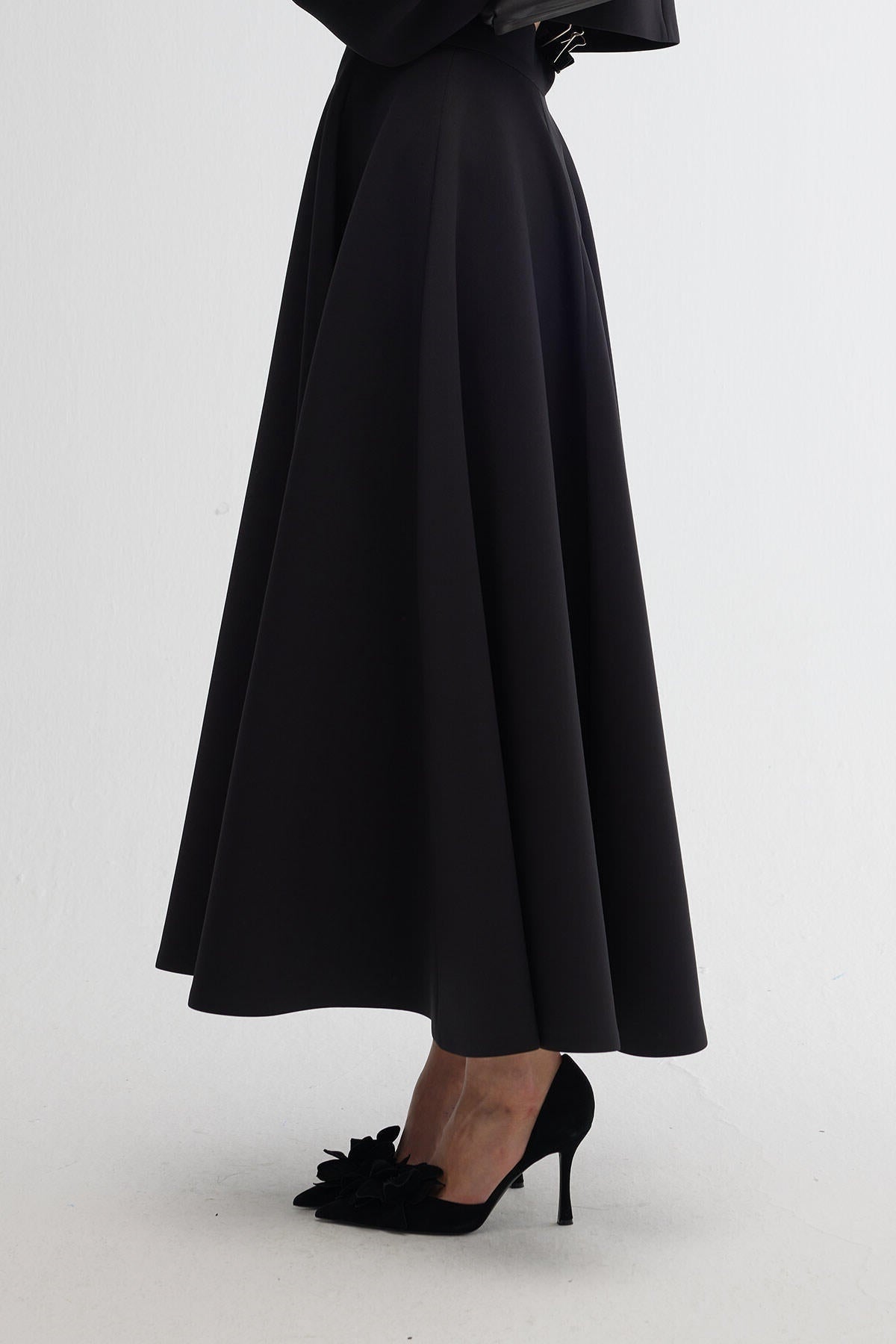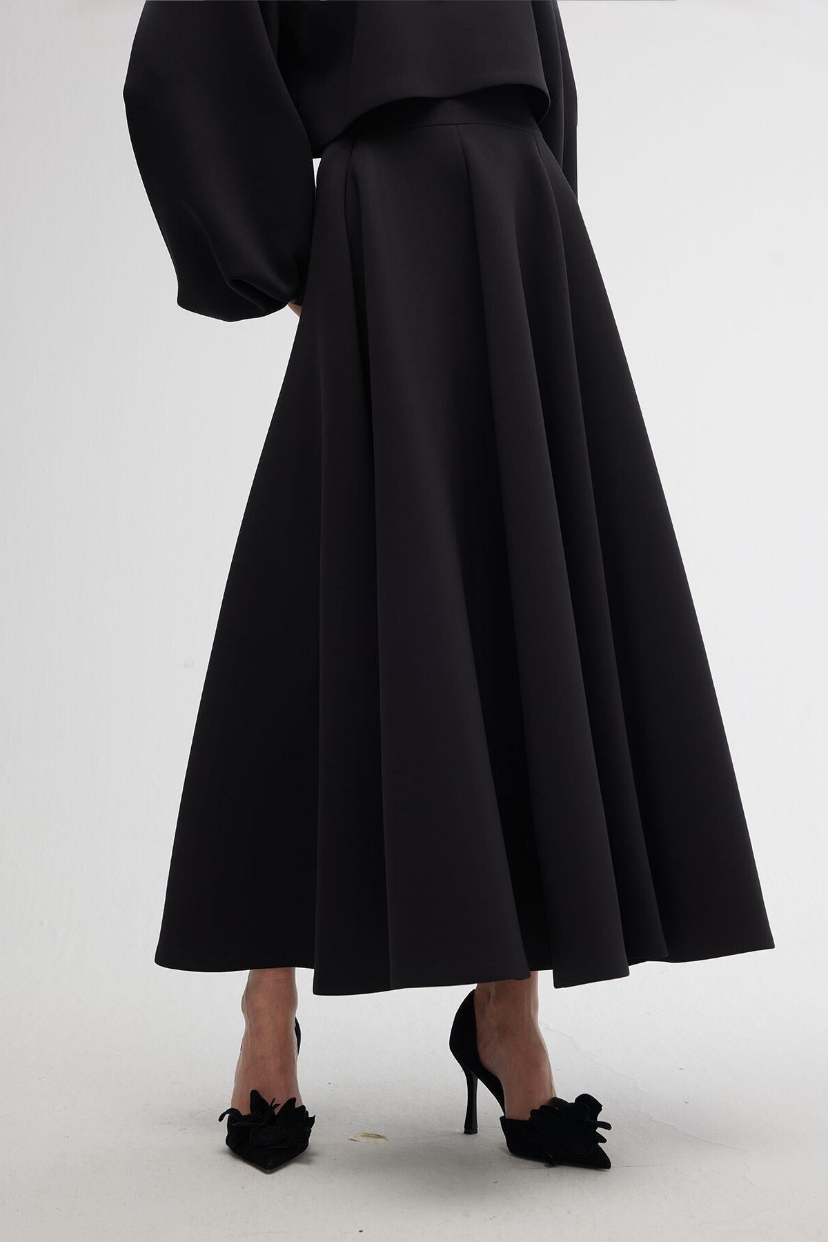 Crew Neck, Puff Sleeve Top, 3D Flower, Maxi Skirt.