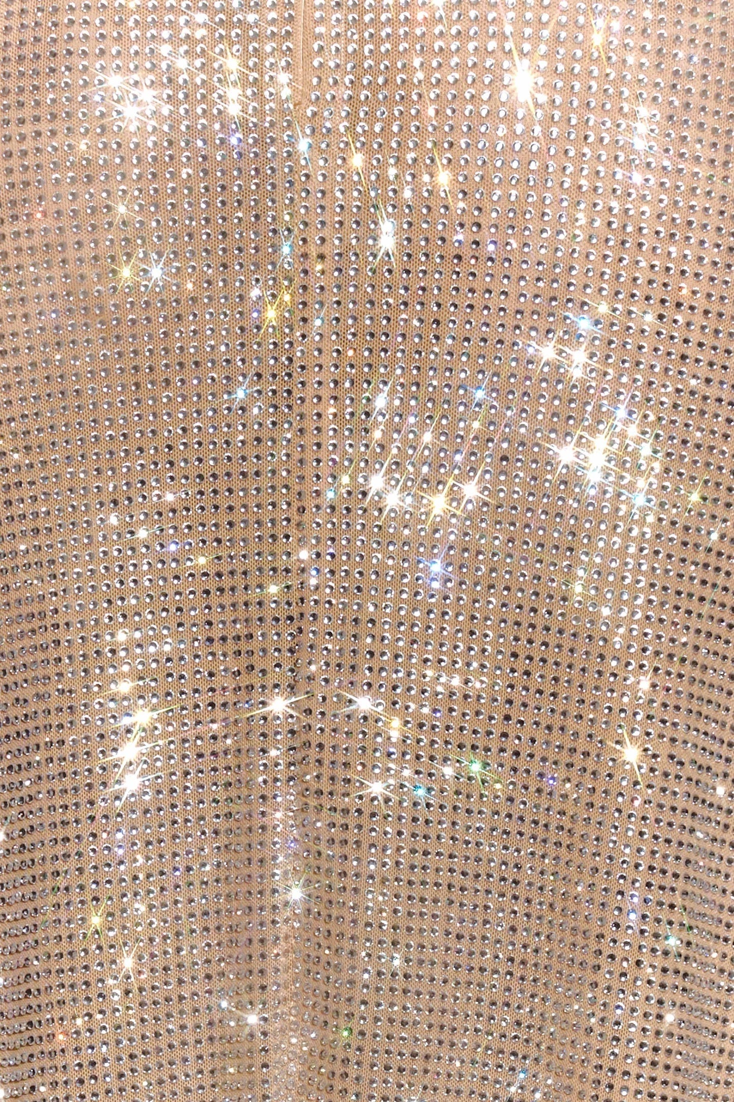 Deep V-neck, Halter Neckline, Mesh Diamante Fabrication, Midi Length.