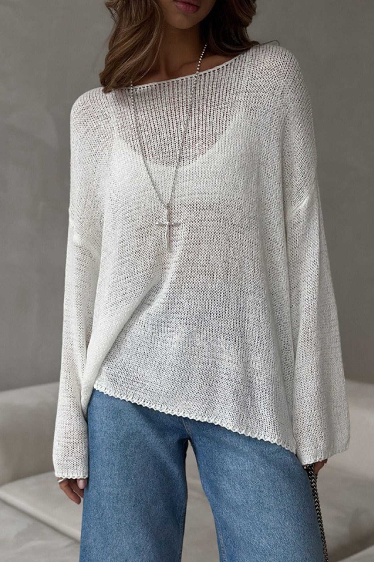 Crew Neck Hollow Out Knit Cover-up Sweater