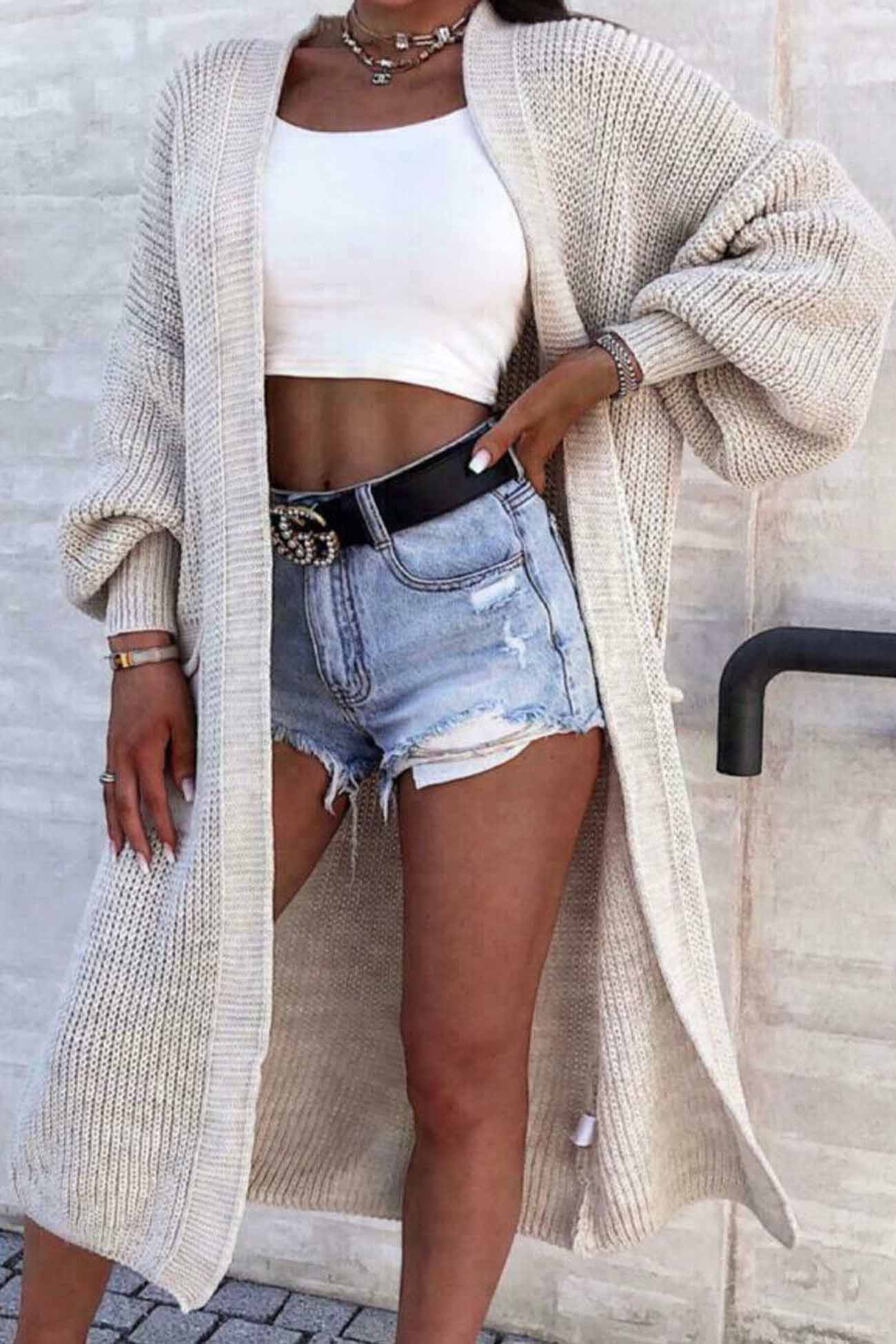 Drop Shoulder Lantern Sleeve Pocket Long Cardigan