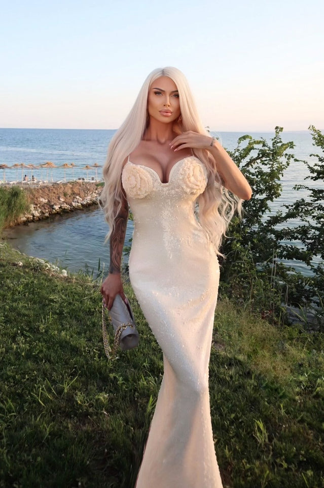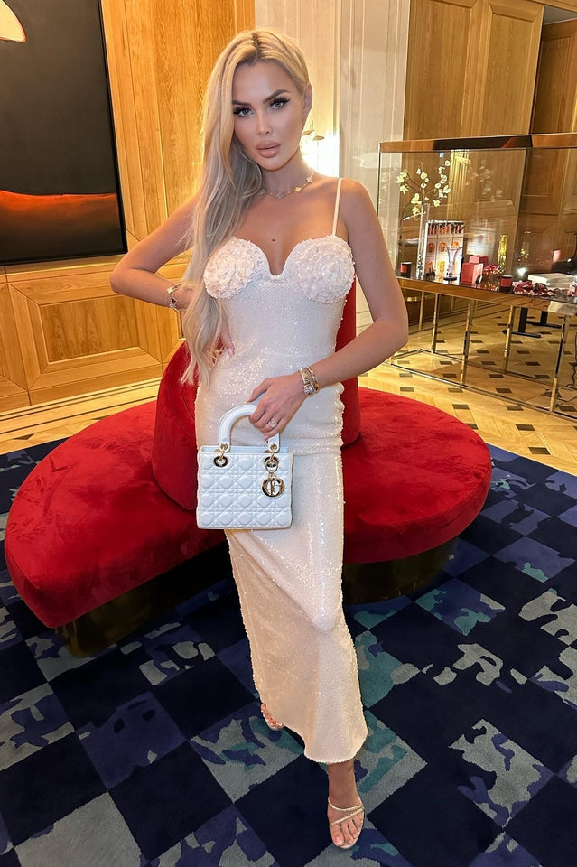 As seen on Hailey Bieber! You've got your exclusive invite, so now it's time to make an unforgettable entrance in the Lorelei Brown Sequin Dress! Shiny brown sequins atop a luxe poly lining shape this dazzling gown with round retro bustier cups that are accentuated with a large 3D flower. A darted bodice falls to a maxi skirt with a flaring mermaid hem. Kick pleat and hidden zipper/clasp at back.