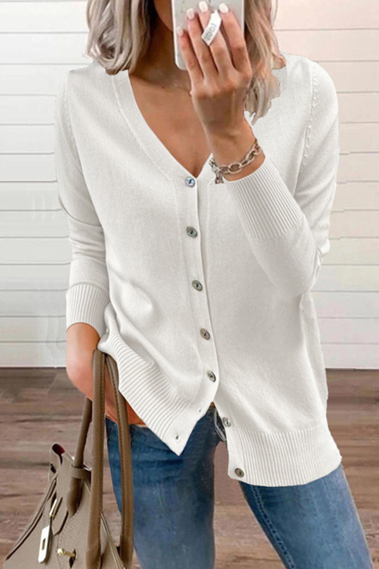 V Neck Button-down Cardigan