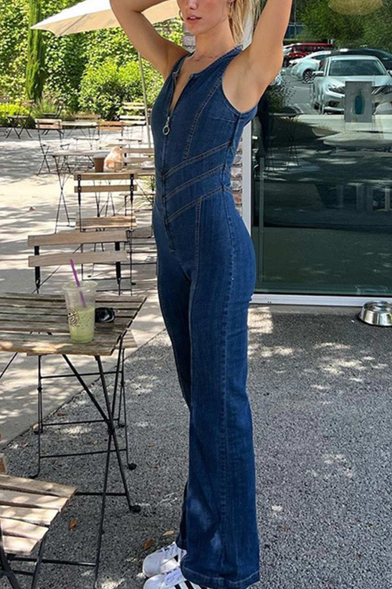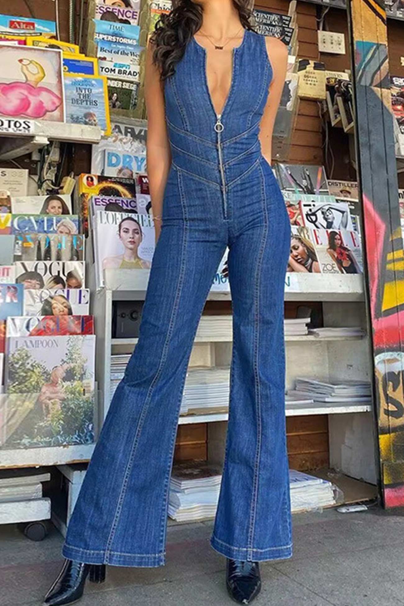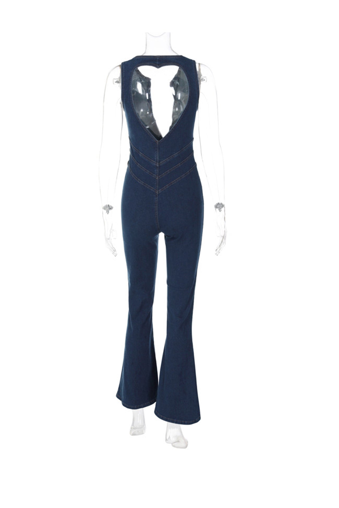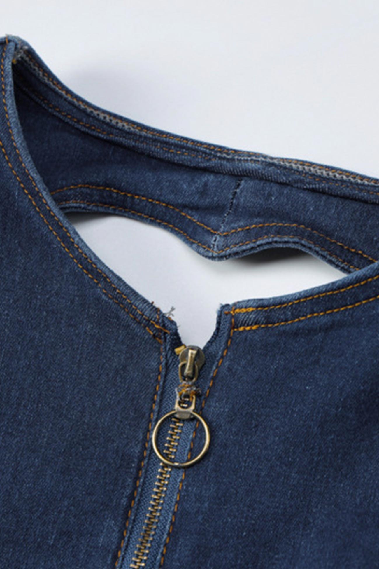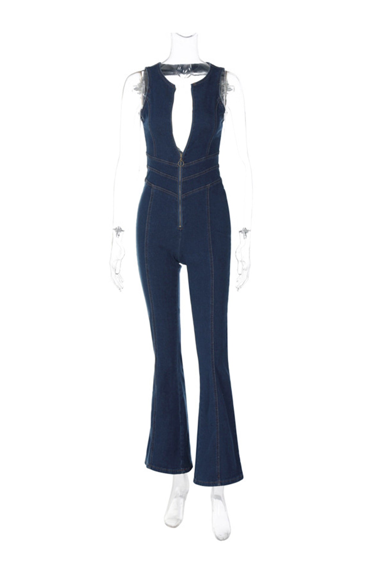 V Neck Zipper Cutout Sleeveless Denim Jumpsuits